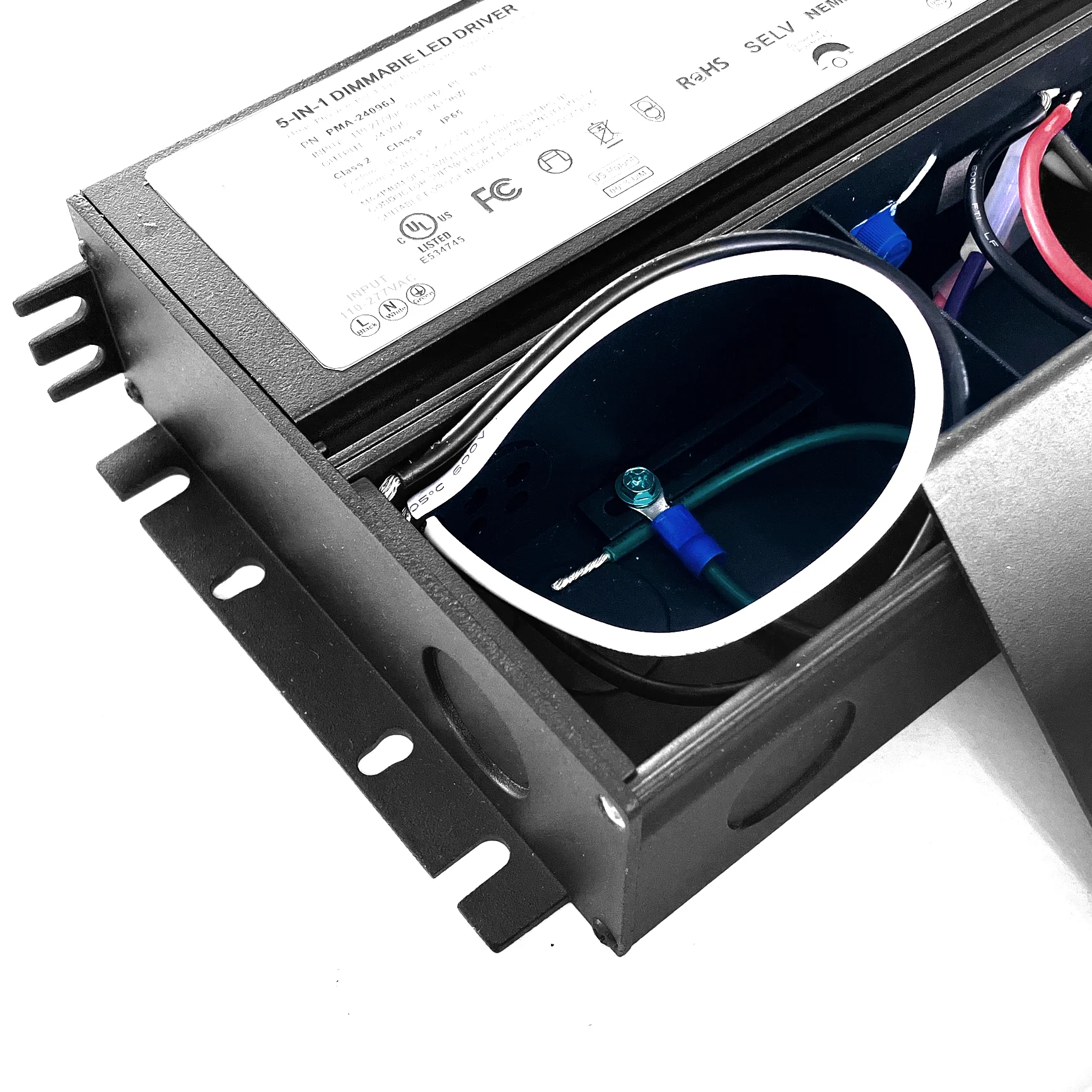 - Dimmable LED power supply with built-in junction box enclosure