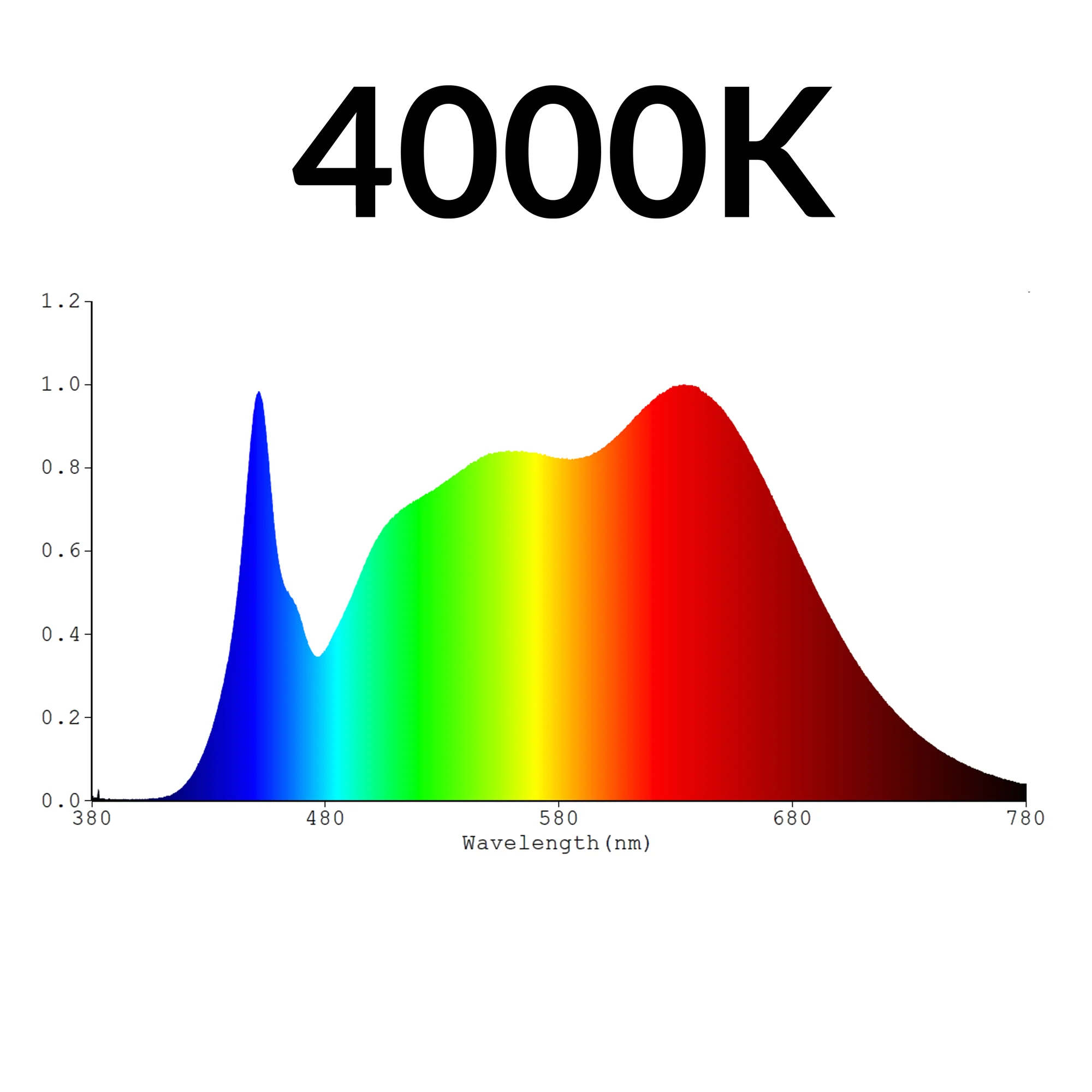 4000K provides an excellent spectral output for strong growth and flowering. In addition to strong output in the blue 450 nm region, RedBoost red phosphor technology ensures sufficient coverage in the deep red portion of the spectrum past 700 nm, targeting chlorophyll A absorption in particular.